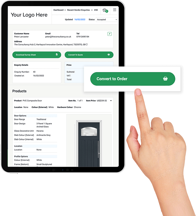 Any enquiry that you generate via Branded Mode can be pushed directly to your Fabricators Portal to be converted into a quote. From their you can tweak options and add a price without the need to re-create your customers enquiry.